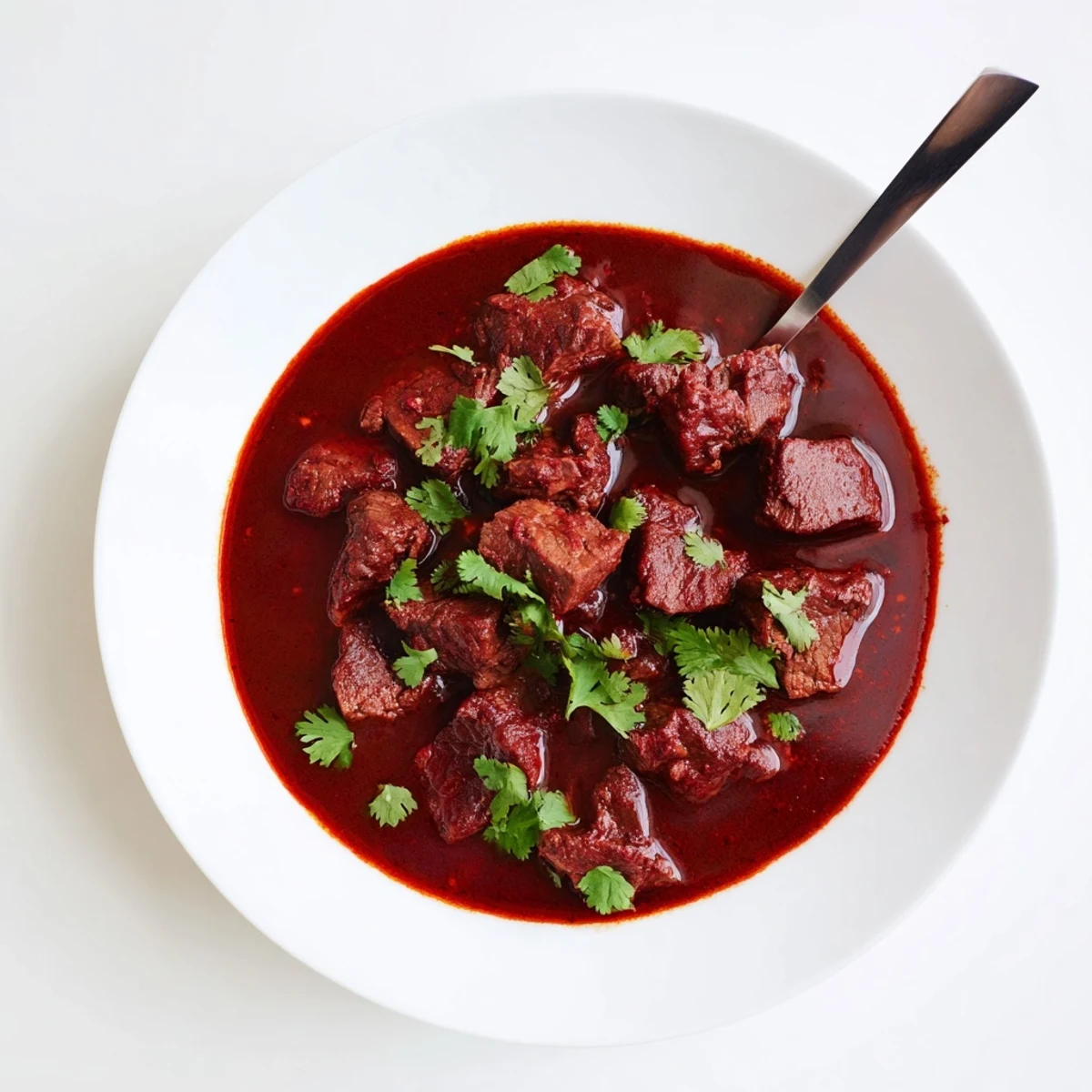 This hearty Mexican-inspired stew features tender beef chuck roast slowly simmered in a deeply flavorful red chili sauce made from dried guajillo and ancho peppers. The sauce blends aromatic onions, garlic, cumin, oregano, and smoked paprika for authentic depth of flavor. After 6-8 hours in your slow cooker, the beef becomes meltingly tender as it absorbs the rich, smoky red chili flavors. This naturally gluten-free and dairy-free dish delivers restaurant-quality results with minimal effort.